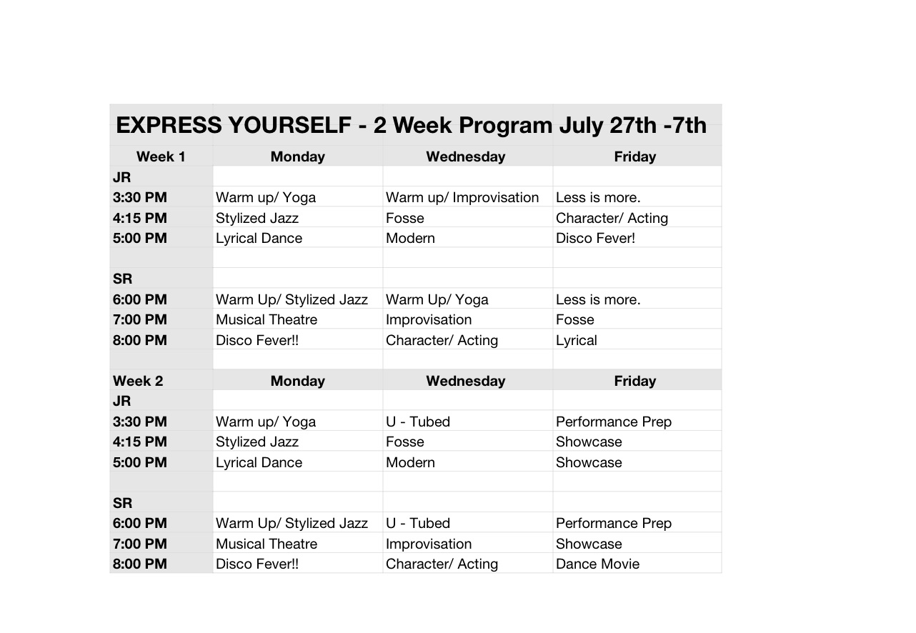 Jr's (8 to 12 yrs) - 3:00 to 5:45 - $105 for all 6 days!
